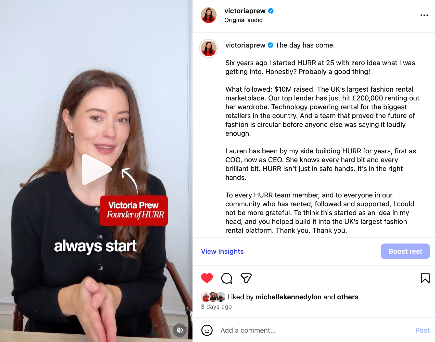I've hired a CEORead this on victoriaprew.comβ Read time: 2.5 minutes Hey! Happy Monday. Six years ago I started HURR from my bedroom. I was 25. I had complete conviction that the fashion industry was broken and that the rental model was the fix. What followed: $10 million raised in venture capital at a time when just 2% of VC funding globally went to female founders. The UK's largest fashion rental marketplace. A top lender who has just made Β£200,000 renting out her wardrobe. Rental technology powering the biggest retailers and brands in the country. A team that proved the future of fashion is circular before it was fashionable to say so. It was the ride of my life. And then I made the decision most founders are too scared to make. I promoted our COO, Lauren, into the CEO role. Someone who had been building HURR alongside me for years. Someone who runs toward the things that make the company exceptional at this next stage. HURR is not in safe hands. It is in the right hands. And I'm going all in on what comes next! TODAY AT A GLANCE